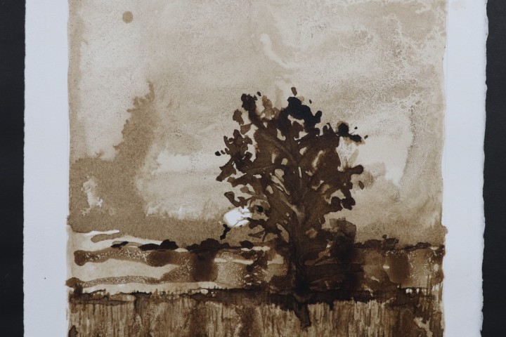 Leigh Leighton-Wallace, “Tree – Sunrise”, graphite and walnut ink on paper Unframed drawing on handmade paper. Pencil signed by artist “Tree” – “Leigh Wallace”