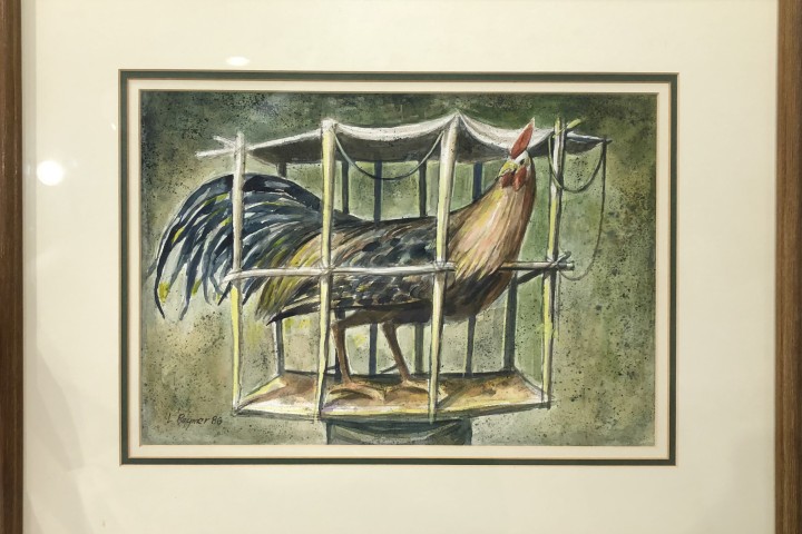 Lester Raymer, “Rooster in Cage”, Watercolor (SOLD)