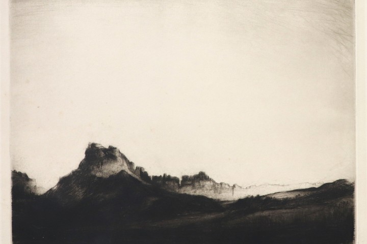 Levon West, “Sawtooth Ridge – Glacier National Park” etching/drypoint A fine impression. 4/75, unframed.