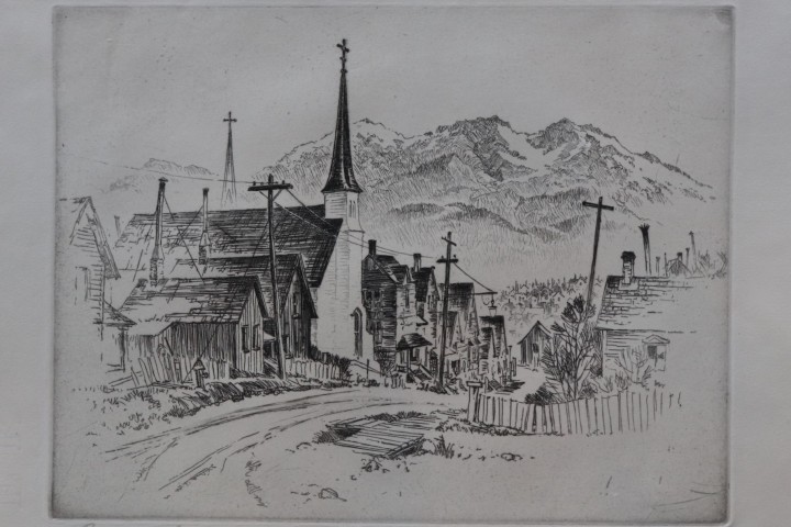 Lloyd Foltz, “Crosses in Leadville”, etching