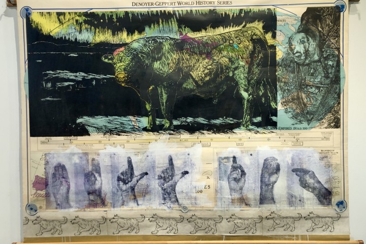 Gordon Sherman, “Bull Dog”, Mixed media on map
