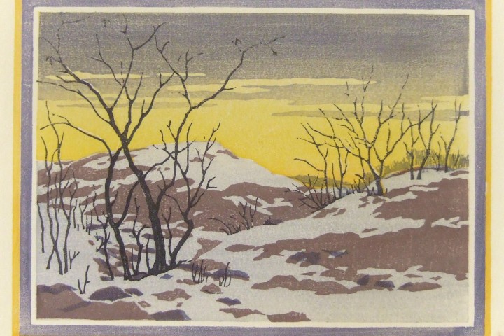 Norma Bassett Hall, “Winter Sunset”, color block print
