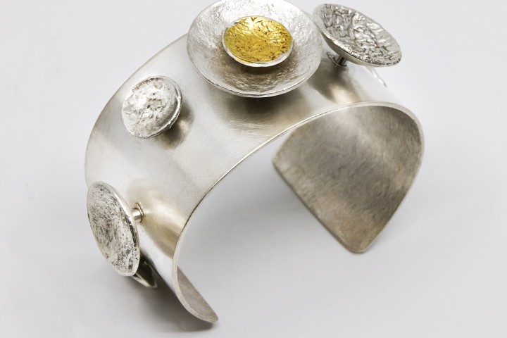 Paige Price, “Geo Disc Cuff”, Metal/mixed media (ARCHIVE)