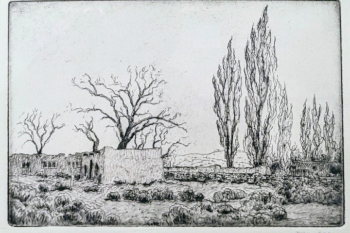 Phil Epp, “Galisteo Morning”, etching Artist signature in LR corner, “Phil Epp”. Archival mat & framing; ready-to-hang.