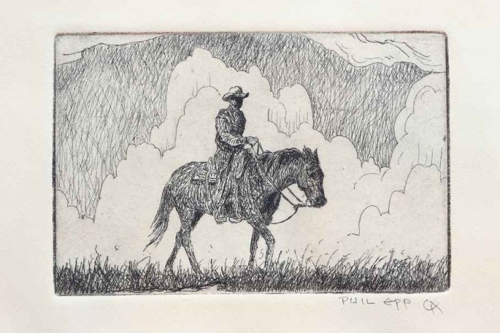 Phil Epp, “Kansas Cowboy”, etching (SOLD) Pencil signed “Kansas Cowboy” “Phil Epp” “140 Small Margins” – unframed.