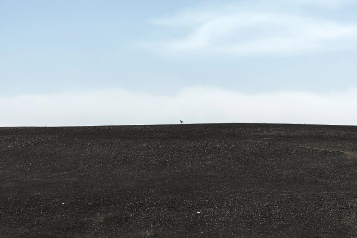 Philip Heying, “A deer running across a hilltop (with all four feet off the ground) after a recent burn south of Matfield Green – 14 April 2022 12:42pm”, Photograph