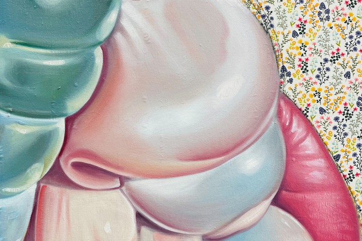 Rachel Curtis, “Sweet Tooth 2 (Green)”, oil on gingham