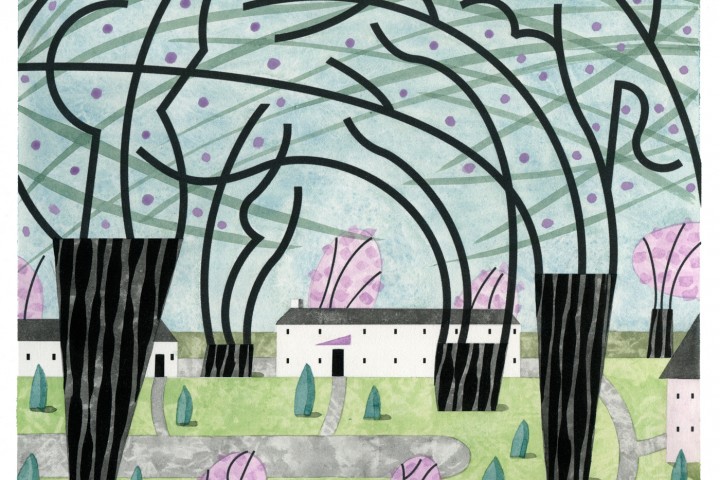 Rebecca Hoyer, “Inhabit the Blue Sky”, watercolor and digital ink (SOLD)