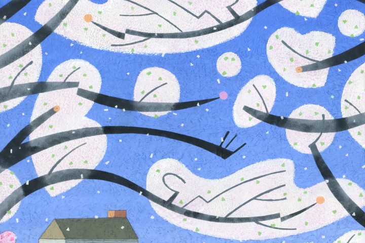 Rebecca Hoyer, “Snowy Skies”, oil on board (SOLD)