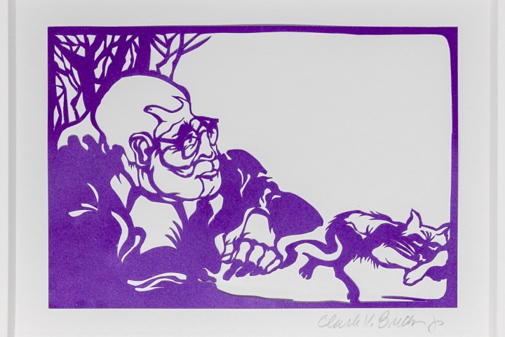 Clark Britton, “Self Portrait with Cat (purple)”, paper cut (SOLD)