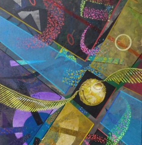 Steve Murillo, “Golden Snitch”, acrylic on canvas