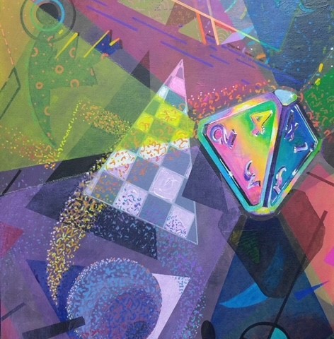 Steve Murillo, “Levitating Die”, acrylic on canvas