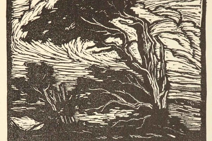 Sue Jean Covacevich, “Windswept Trees”, Woodblock print
