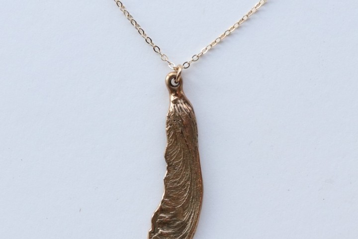 Sydney Pener, “Maple Seed Pendant – Ancient Bronze on Gold Filled Chain” (SOLD)