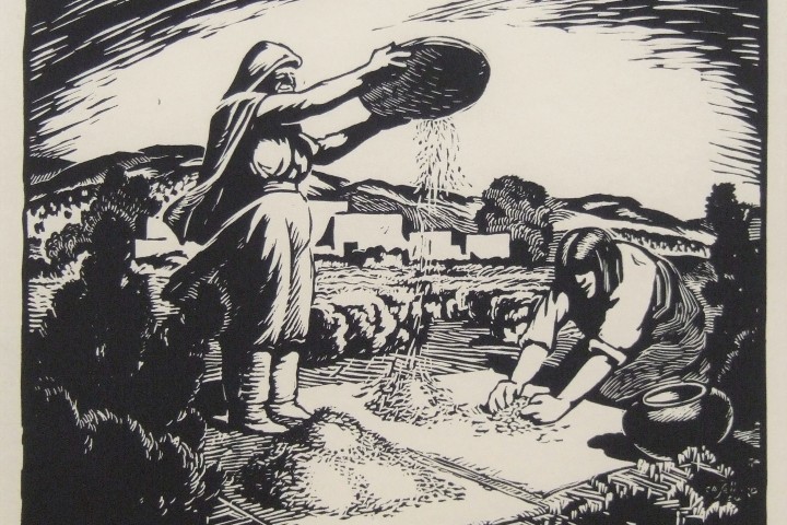 Unframed 1934 original block print by Prairie Print Maker founder C. A. Seward.