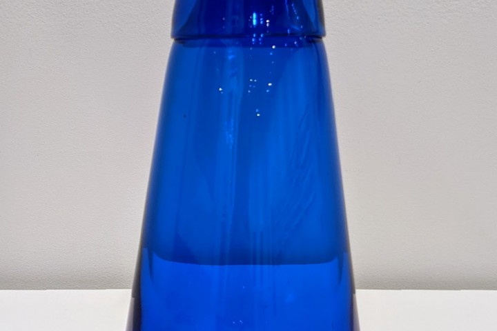 Tyler Kimball, “Transparent Blue Decanter,” Glass (SOLD) A transparent blue decanter with a detachable cup/lid.