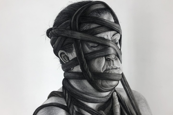 Valerie Haring-Oehm, “Bound by Grief”, Charcoal on paper (ARCHIVE)