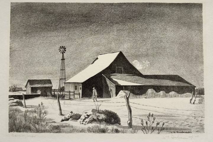 William Dickerson, “Barn in Snow”, Lithograph (SOLD)