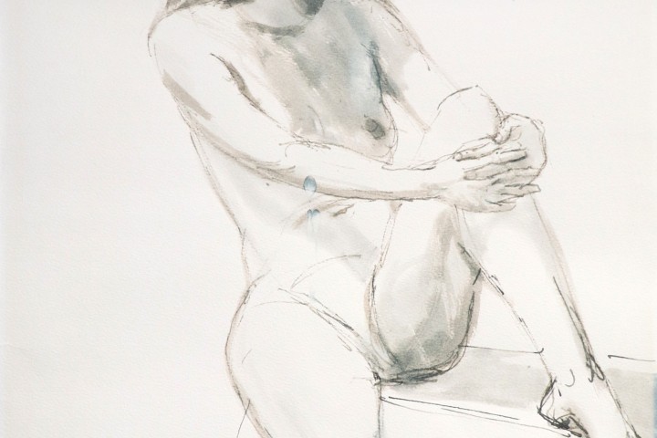 William Dickerson, “Untitled (Nude)” pen and ink A nude sketch with archival upgrades to the matting and its original Dickerson frame.